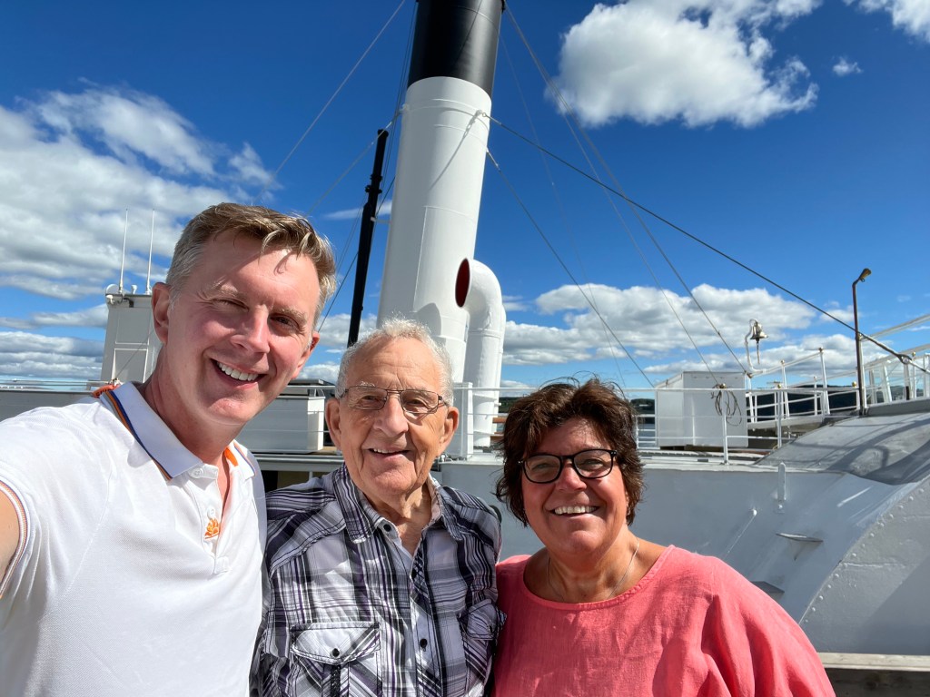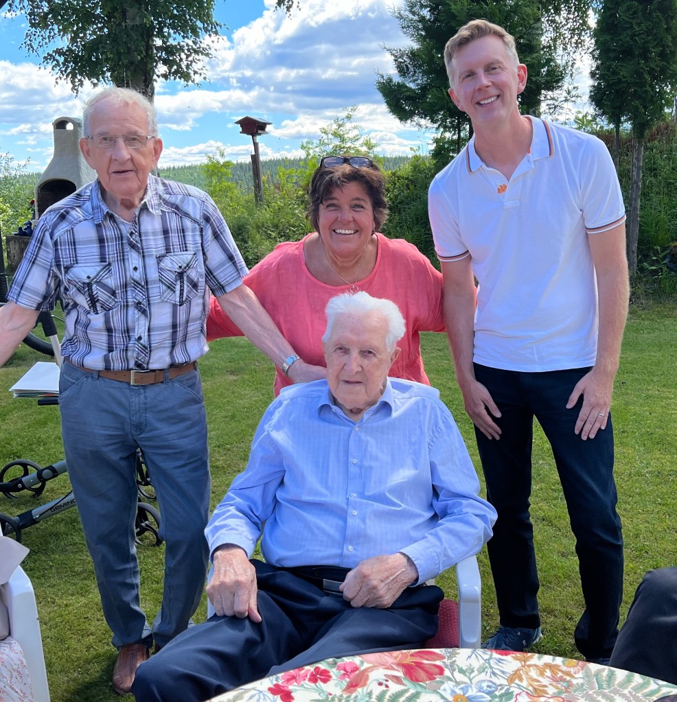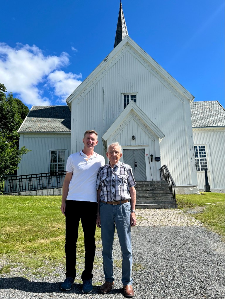 One of the best parts of this amazing day was having the opportunity to chat with my great-grandma Elvina’s first cousin, Reidar Lindalen, who is 97. Reidar is the youngest child of Olaus and Kristine (Anton’s youngest sister). He spoke about the old days, and how his mother didn’t know her older siblings who had moved to America because at least two of them (Syverine and Hans) had moved there before she was born. Reidar also had several funny stories about his years as a bus driver. My favorite was the one about the bus load of American visitors who he drove to a local hotel. In anticipation of their arrival, the hotel manager had organized a big dance party for these Americans, only to be informed by Reidar that they weren’t big partiers — it was a bus full of ministers!