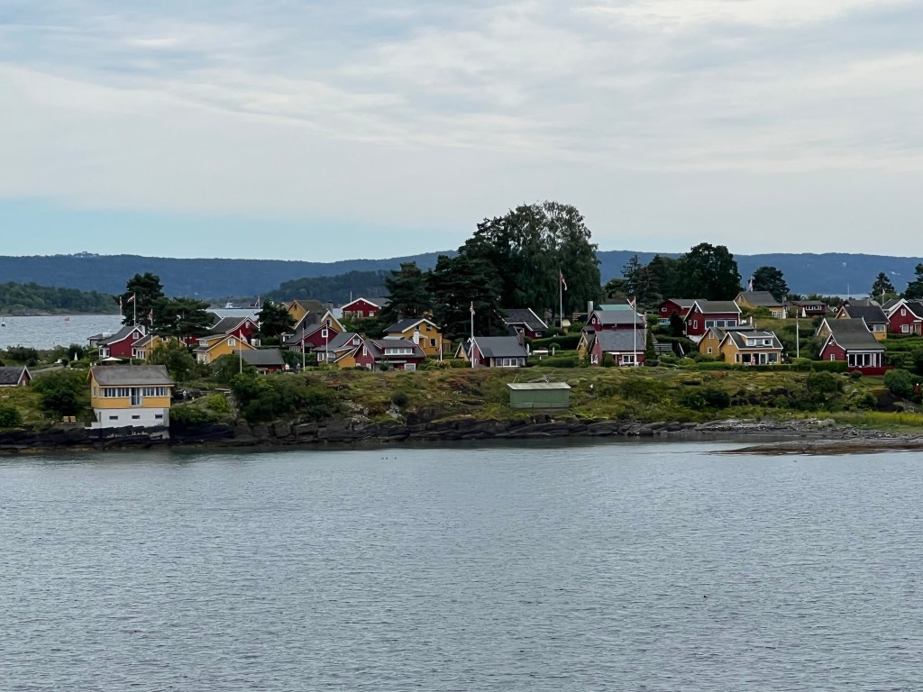 Physically, Norway and Germany are separated only by a couple of modest-sized bodies of water: Skagerrak and Kattegat. Skagerrak is the strait just south of the Oslofjord between Norway and Denmark. Kattegat is the strait just south of this, between Denmark and Sweden. Collectively, these two straits and the Danish islands separate the North Sea from the Baltic (or what people in most Germanic-language countries call the East Sea).