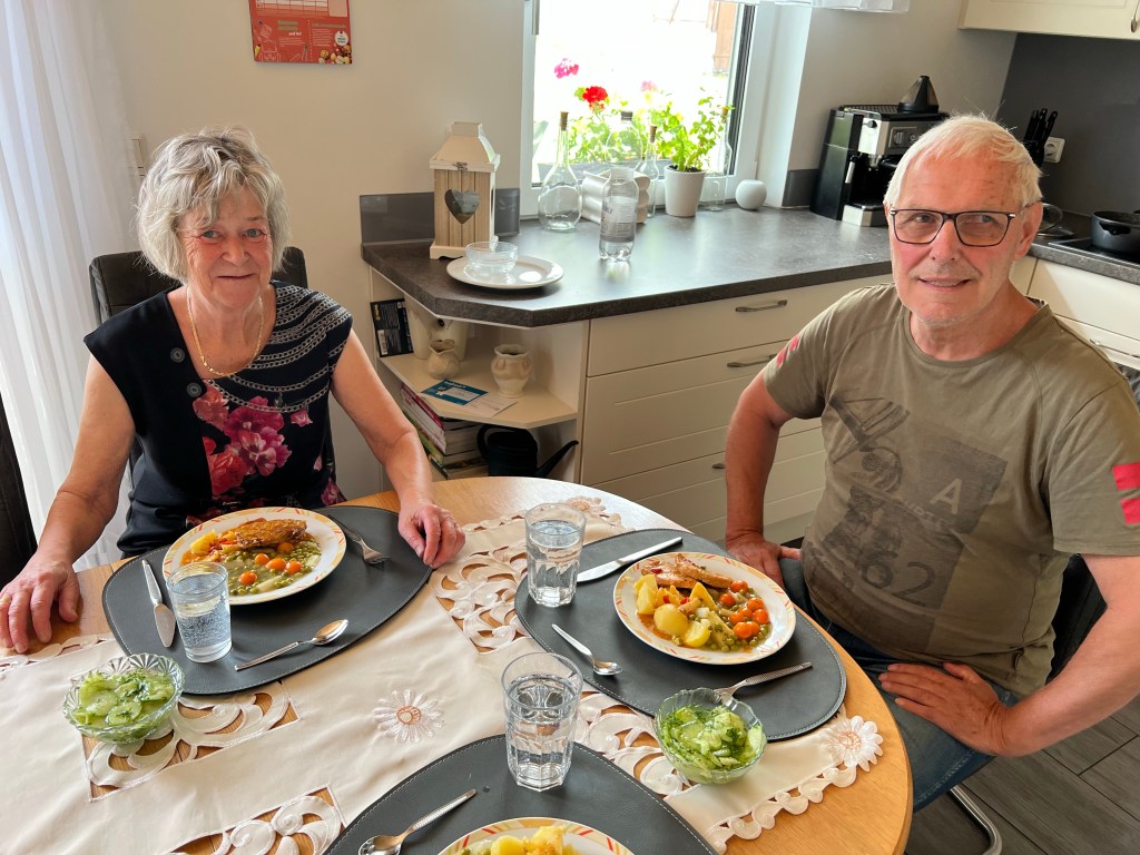 The photo above is hard to see, but it’s a print out of a new family tree that Hartmut made, spread across five pages on my floor. This new tree shows that Bernd and I are fifth cousins: I am the descendant of Wilhelmine Friederike Wackrow (my great-great-great grandma, mother of Wilhelm Schmidt) and Bernd is the descendant of her sister Maria. Before she married in 1853, Maria gave birth to a son in 1845 named August who took his mother’s maiden name. That was Bernd’s great-great grandpa. Had that name not been passed down, I wouldn’t have thought to knock on Bernd’s door 177 years later.