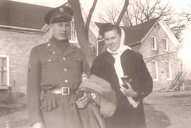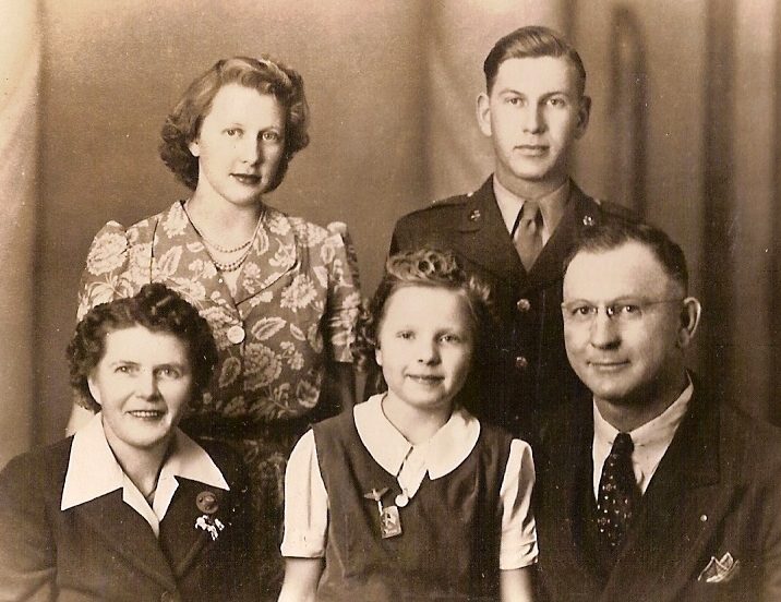Two weeks later, Gene managed a brief visit to Wisconsin and back. He knew his team could be shipped out at any time, so he took this final opportunity to see Phyllis, his parents, and his sisters Shirley and Ruthie. I believe this photo may have been taken during that furlough: