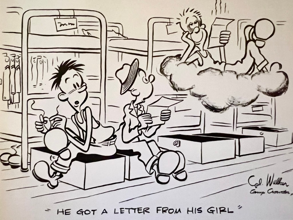 April and May of 1943 were particularly rainy. One of the barracks got flooded, and a young soldier by the name of Mort Walker made light of the dismal situation through a series of humorous drawings. Walker’s experiences at Crowder inspired “Camp Swampy”, the setting of a comic strip he published for decades – Beetle Bailey.[9]