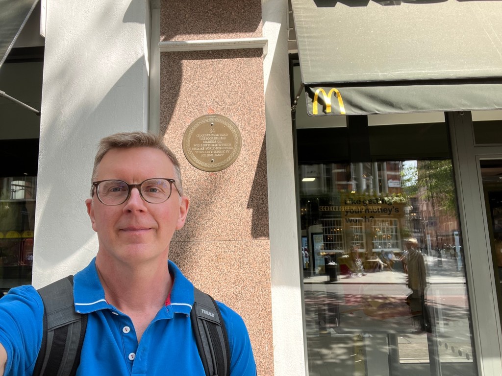 People, goods, and culture have flowed the other way, too, of course. And on multiple occasions in my travels, I was reminded of how ex-pat Americans have made their mark on Britain, from T.S. Elliot to Madonna. One of the first Americans to travel east across the Atlantic was the daughter of a Powhatan chief in Virginia. She made landfall close to the Mayflower Steps (pictured above) in the year 1616. She was called Amonute in her youth and later Rebecca Rolfe after her captors β€œencouraged” her to convert to Christianity. We know her as Pocahontas. She died just a year after arriving in England.
