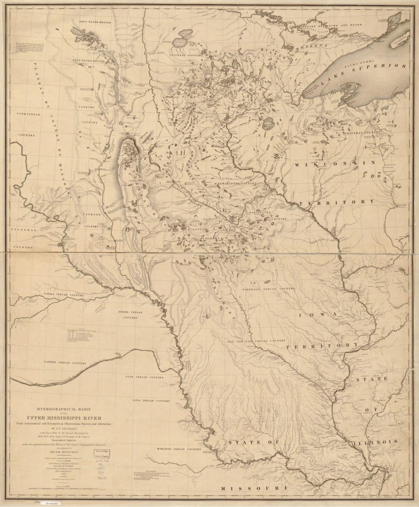 After Schoolcraft’s 1832 expedition, a variety of characters explored the Mississippi headwaters and asserted competing claims to the “true source”. My favorite is Joseph Nicollet. Having lost his fortune in France, Nicollet emigrated to the U.S. and obtained work as a cartographer. In his all-too-brief life he completed three expeditions to the Upper Mississippi and created the first accurate maps of the region. On his 1836 expedition, he mapped the headwaters, retracing Schoolcraft’s route and confirming Itasca as the source. But he did note that a small stream flowed into Itasca from the south, which he referred to as an “infant Mississippi”.2