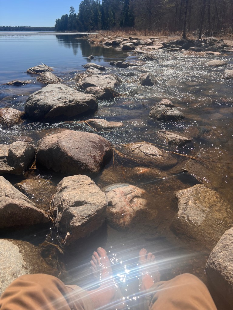 If Spence had opinions on any of the above, he didn’t share them with me. But after our second full day of hiking in Itasca State Park, he got warm and decided to have a soak in the lake. Unfortunately, he picked a muddy spot to do this. So, when we were heading out of the park, I drove us back to the officially designated headwaters site to wash him off. We had visited this spot the prior day, but now it was transformed. What had been a cold, windy and rather gloomy place was, on this afternoon, bathed in warm sunlight.