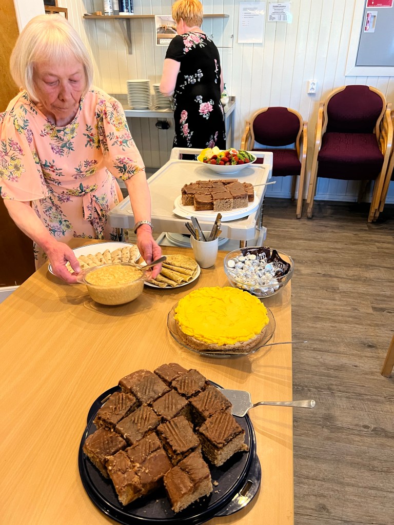 Lilian (Reidar Larsen’s partner) is putting out some traditional Norwegian desserts. (The bowl of Hershey’s Kisses was my meager contribution!) My great-great grandma Marie Alfsdatter Greibesland arrived in America 130 years ago. It was so important to her daughter, my great-grandma Elvina Anderson Smith, that the family connections be maintained. And I’m proud to report that those connections are still alive, still going strong. Thanks to people like my great-aunt Shirley and her second cousin here in Norway, Halldis Larsen (and today Halldis’s daughter Linda Kittelsen), our families are staying in contact.